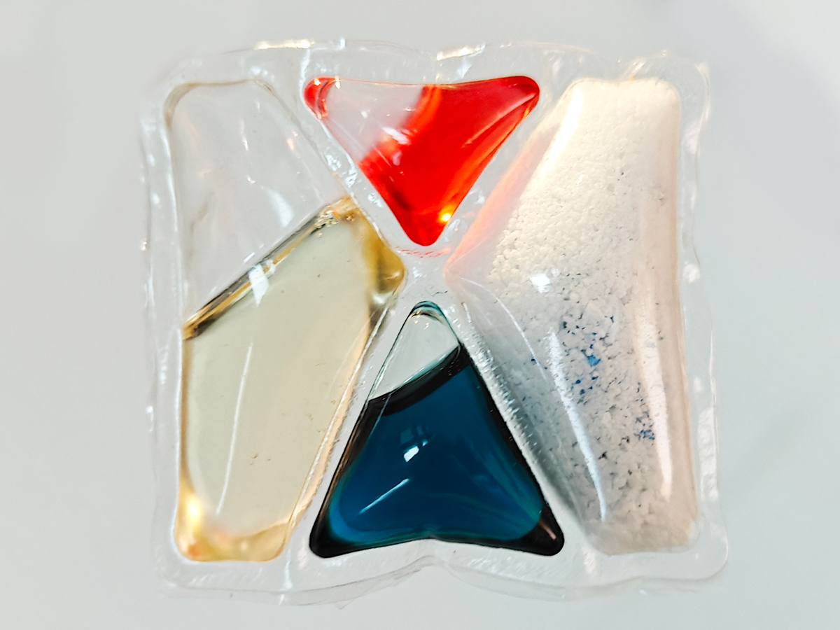 Dual layer pods designed with multi chambers powder and liquid combo formualtion for private label.This new products improves the performance about 20% compare to same liquid formualtion pods.
